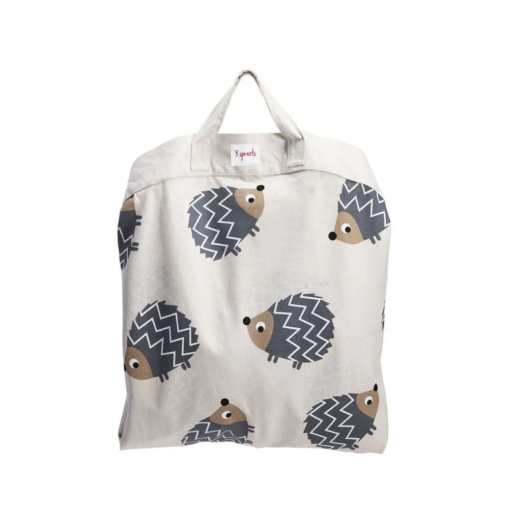 Sac à jouets / tapis de jeu 2 en 1 hérisson de la marque 3 Sprouts. Ce tapis 2 en 1 est très pratique. Vous pourrez l’emmener partout avec vous et votre enfant pour qu’il puisse s’amuser. Ce tapis de jeu servira aussi de sac de rangement pour les jouets de votre enfant. Le tapis se transforme en sac et se ferme grâce à du scratch. Deux poignées sont cousues sur le tapis.