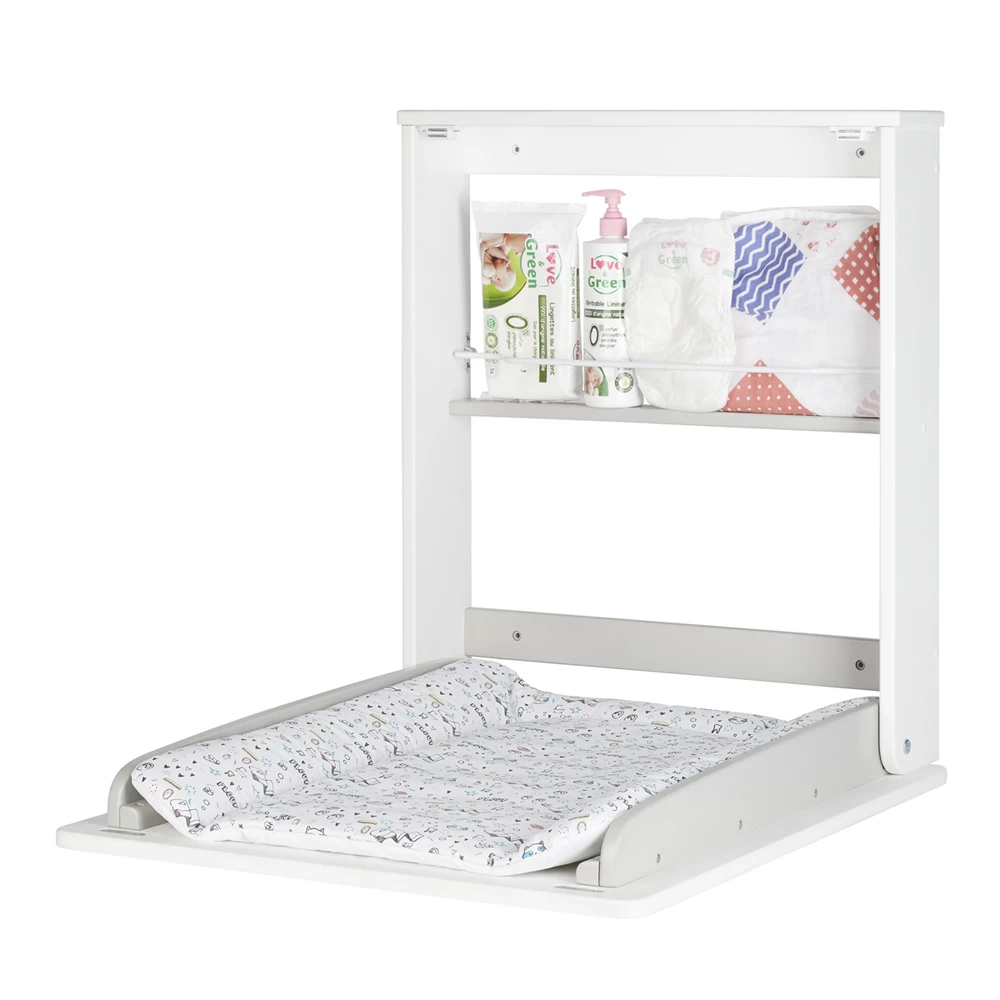 Pratique, la table à langer est livrée déjà montée et se fixe facilement au mur, en toute sécurité.