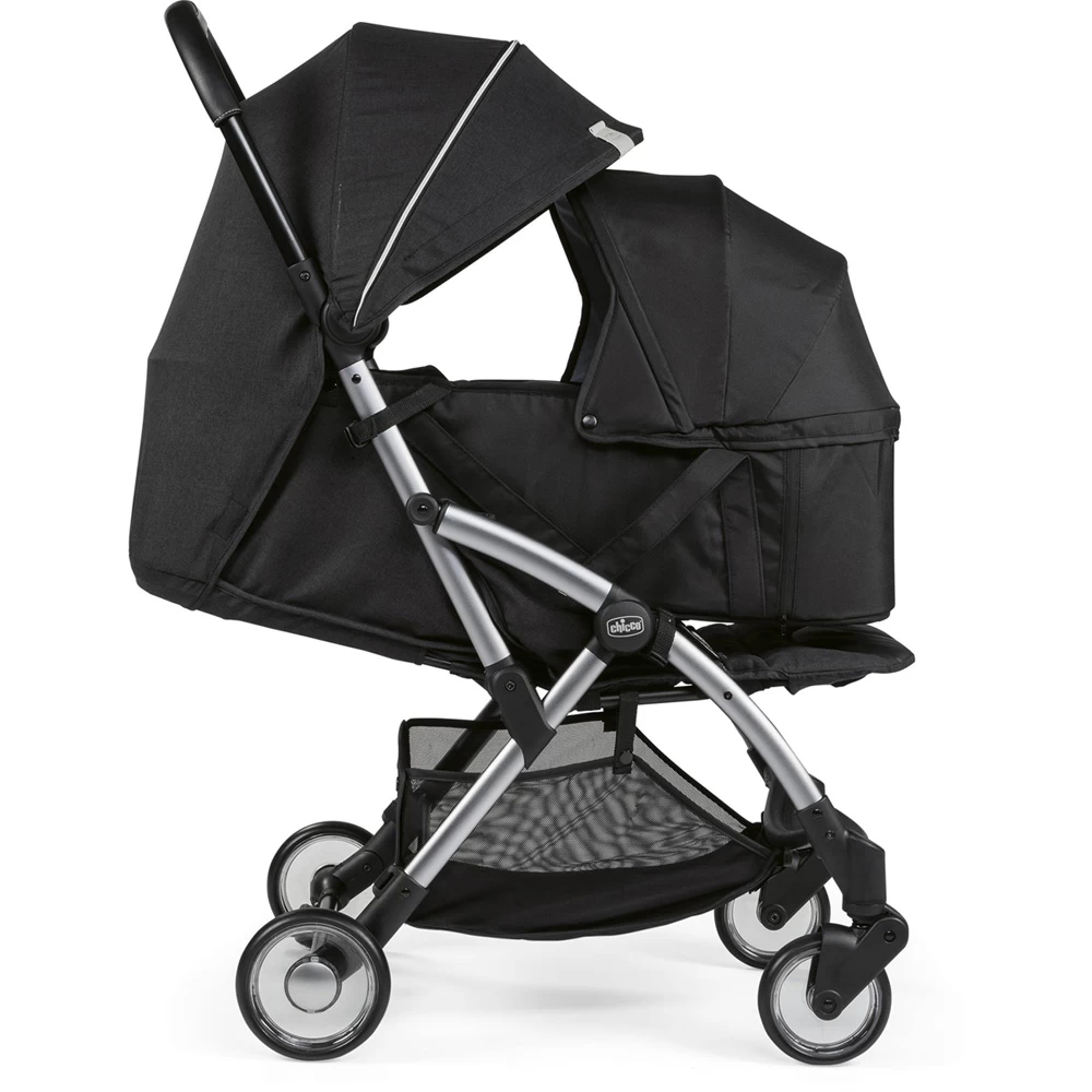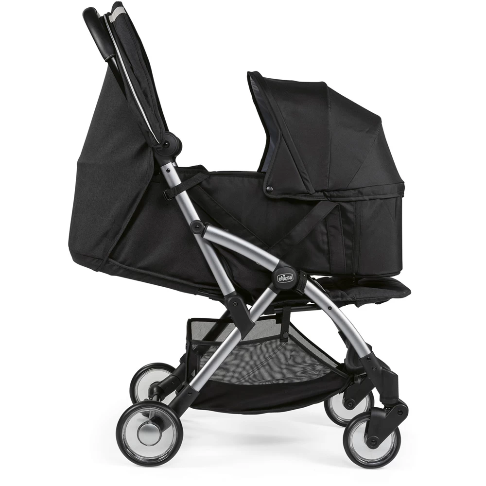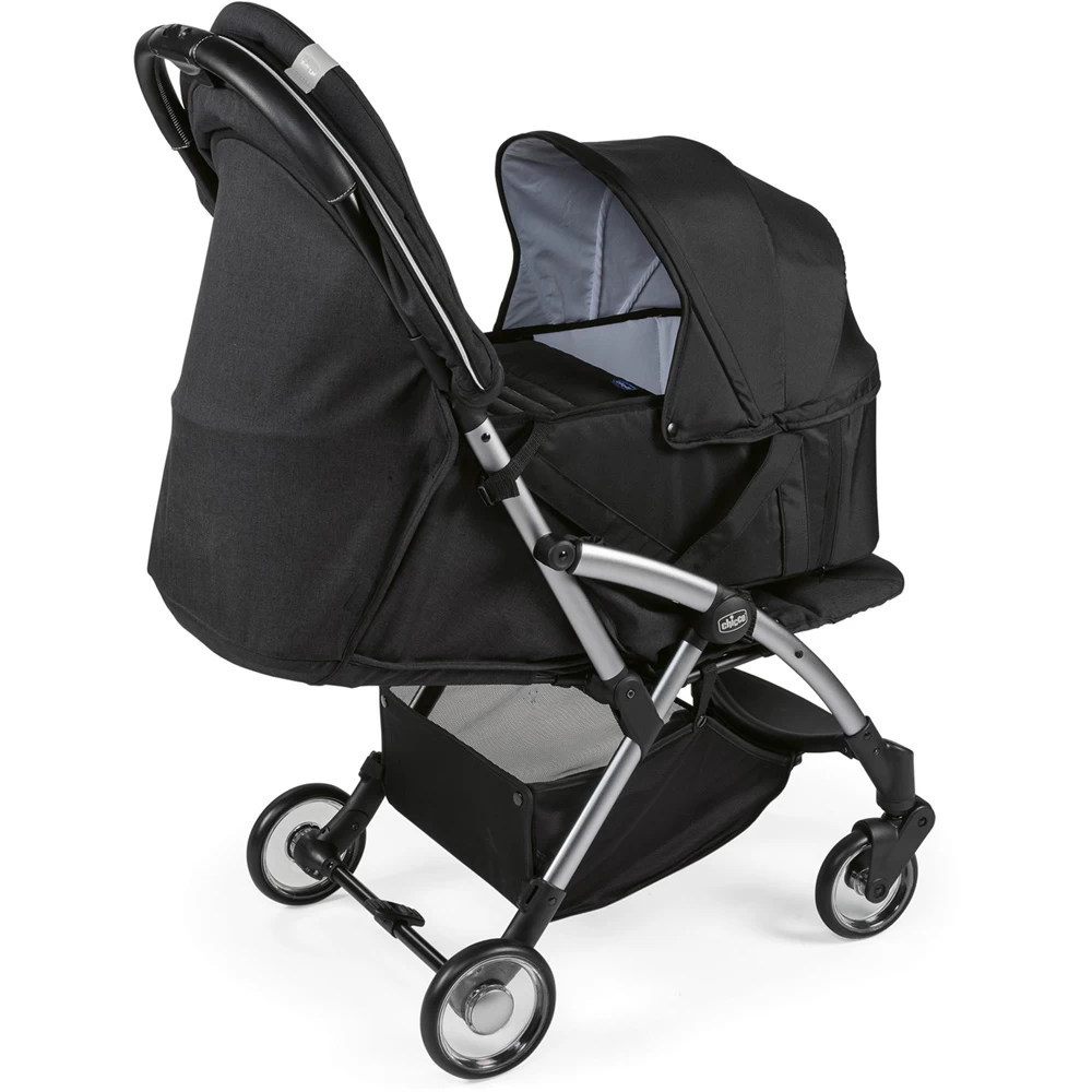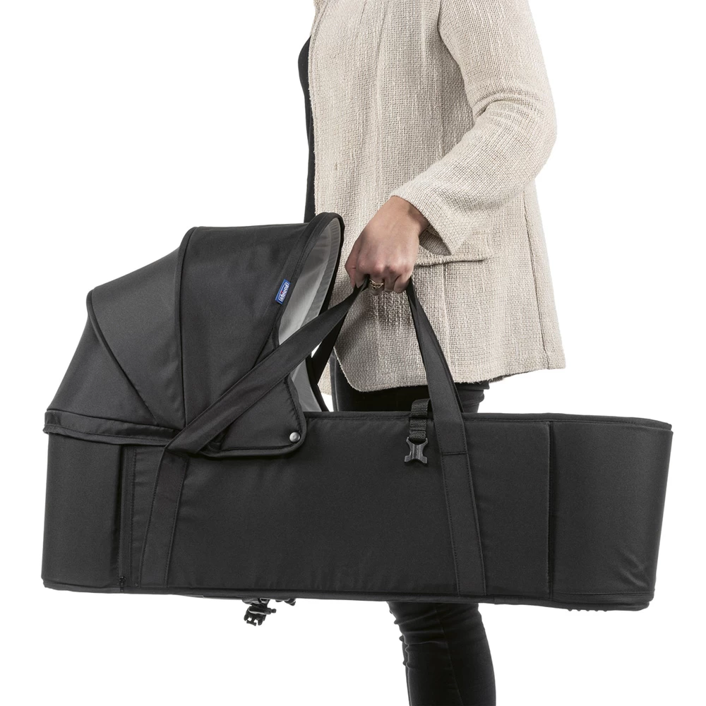 - La nacelle souple Chicco se fixe facilement à la poussette à l’aide d’attaches sur les côtés