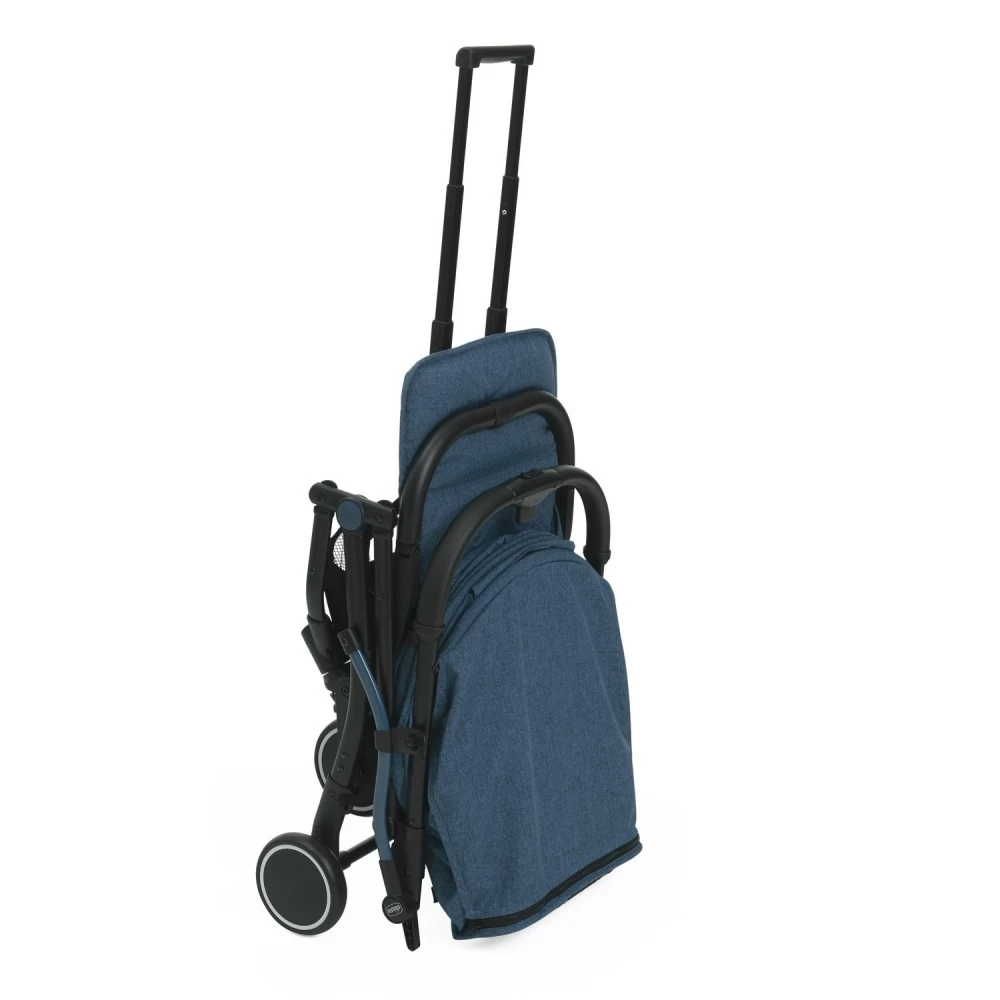 Trolley Me est la poussette compacte de Chicco qui se transforme d’un simple geste en trolley : plus besoin de porter la poussette pliée, elle roule comme une valise à roulettes. Confortable pour bébé et pratique à transporter pour les parents, elle se plie d’une main et roule comme une valise une fois pliée.