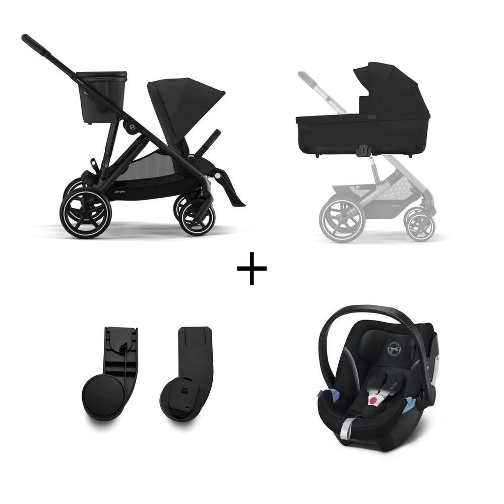 Le Pack trio poussette gazelle s – chassis noir + nacelle gazelle + aton 5 + 2 lots adaptateurs – moon black de la marque Cybex. Utilisable de la naissance à 4 ans environ. Le pack est composé de :