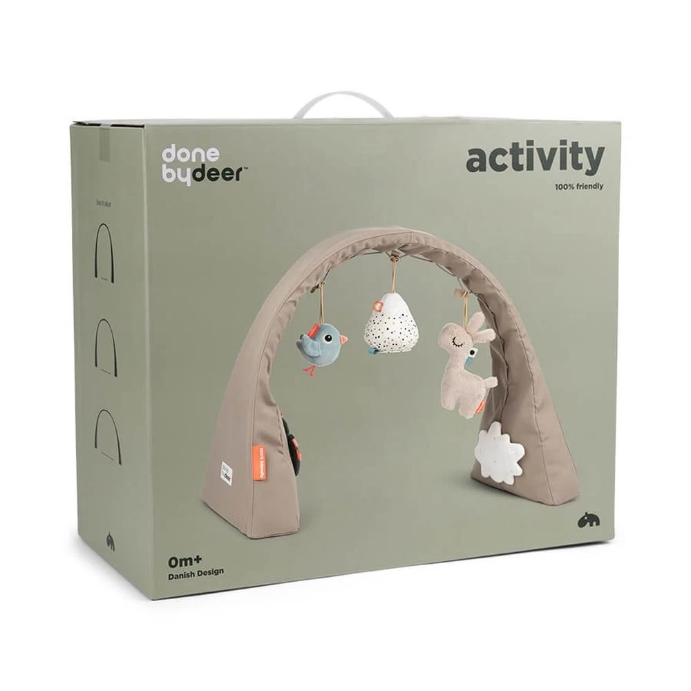 L’Arche d’activités lalee sable de chez Done By Deer. Les plus petits peuvent s’amuser avec les amis et les fonctionnalités stimulantes de l’arche d’Activity. l’arche est autonome, flexible et a une largeur et une hauteur réglables pour aider votre bébé en pleine croissance à atteindre les jouets. À utiliser au sol, au lit ou dans un parc, sur un nid douillet ou à une heure changeante. Il est facile à plier et à emporter ou à ranger.