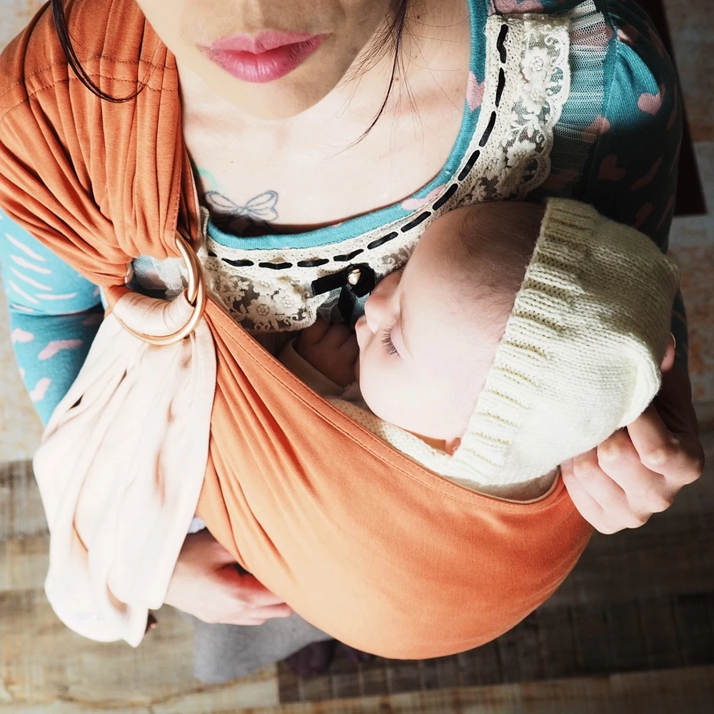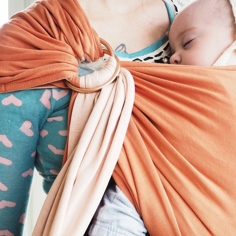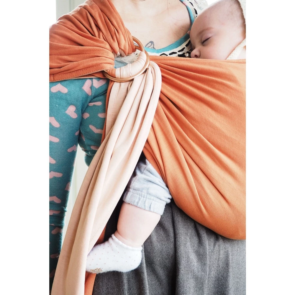 Le portage en porte-bébé sling interprété avec un nouveau tissu Love Radius. Simple, rapide et sans nœud, unisexe, taille unique.
