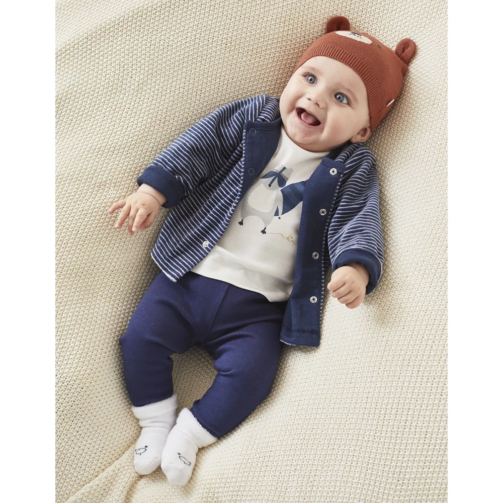 Caractéristiques de l’Ensemble 3 pièces en coton bleu marine 1 mois :