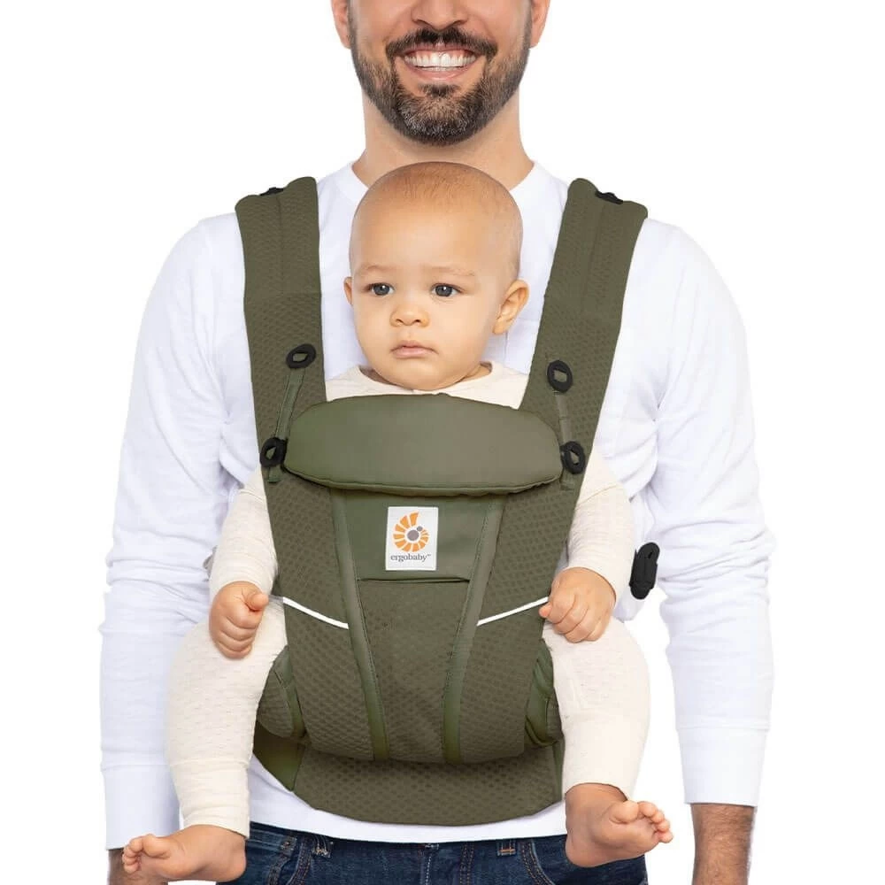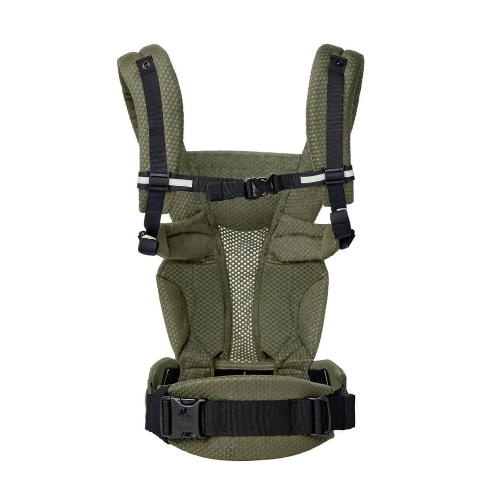 Porte bébé omni breeze vert olive de la marque Ergobaby. Ce porte-bébé vous permettra de porter votre enfant face à vous, face au monde, sur votre hanche ou sur votre dos tout en conservant une position physiologique. Le tissu est fabriqué à partir d’un tissu mesh softflex aéré pour permettre une bonne ventilation de l’air. Ce porte bébé est évolutif. Les bretelles sont rembourrées et entre-croisables.
