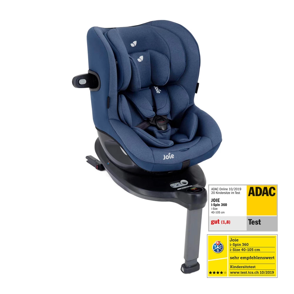 La marque Joie vous propose le Siège auto i-size spin 360 deep sea groupe 0+/1, il est certifié i-Size ce qui permet de rouler en dos à la route depuis la naissance et face à la route dès 15 mois jusqu’a 19 kg.