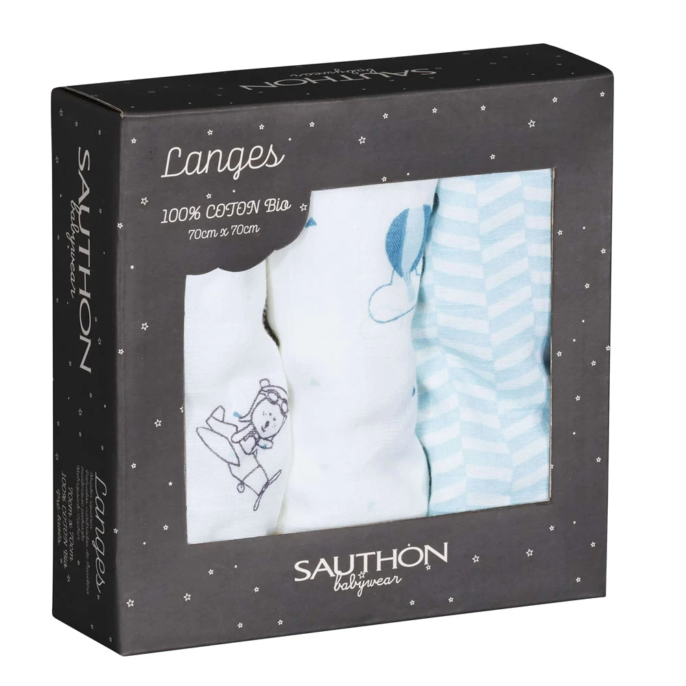Indispensable à l’arrivée d’un bébé, les langes Sauthon sont multifonctions et peuvent servir aussi bien de doudou, que de couverture ou de protection en vue du change. Parce que le lange est au plus près du visage de bébé, Sauthon a développé un lange en coton bio dans un tissu très doux dont la douceur sera renforcée lavage après lavage.