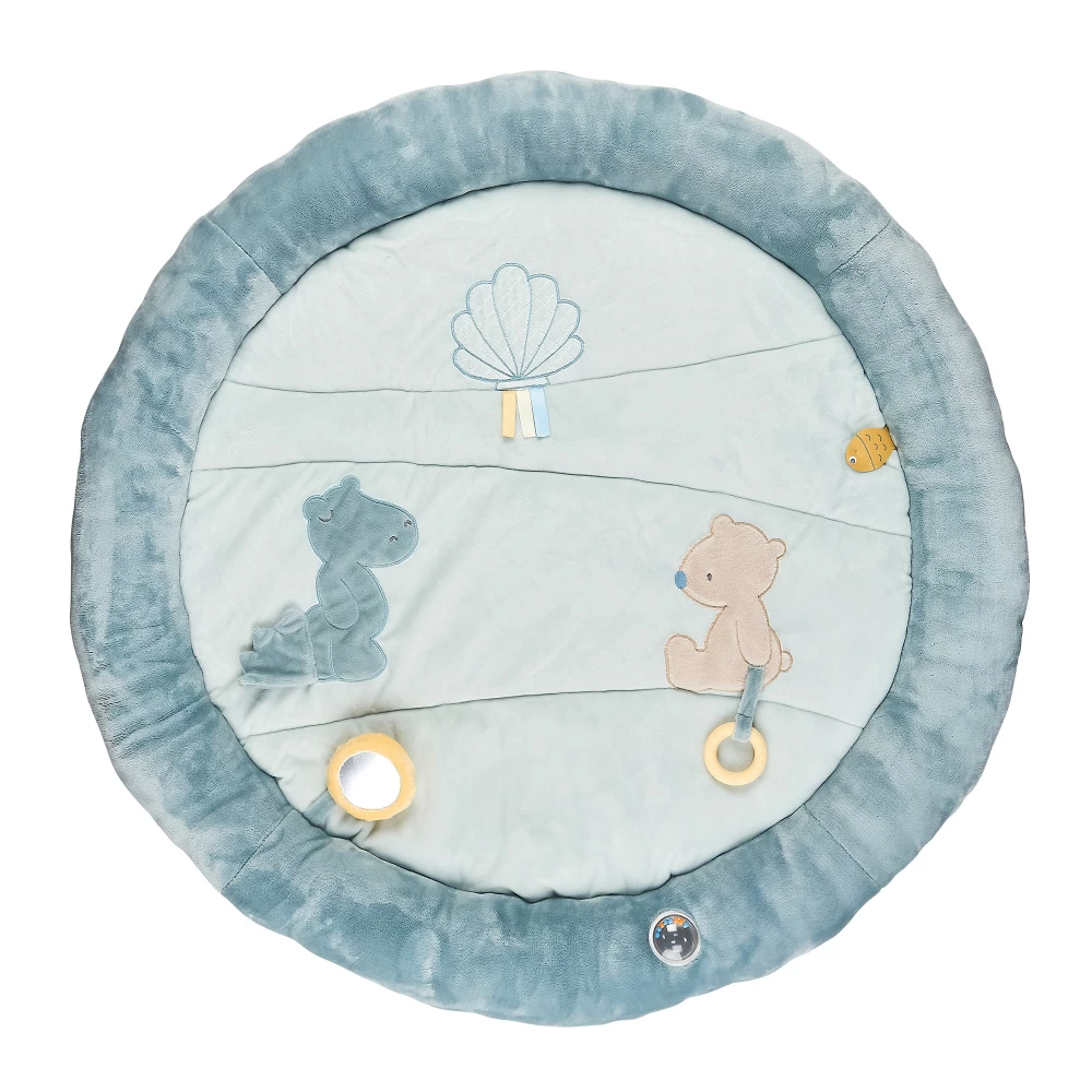 Le Tapis d’éveil pouf avec arches roméo & jules de chez Nattou. Le tapis avec ses multiples activités différentes invitent au jeu et à l’exploration (papier crissant, hochets, miroirs, …). Votre bébé peut ainsi se créer un petit monde à lui. Toutes les activités invitent au développement et à l’éveil de bébé.