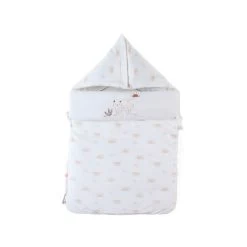 Le nid d’ange en Veloudoux® écru imprimé soleil est idéal pour la sortie de la maternité, bébé s’y sent comme dans le ventre de sa maman.