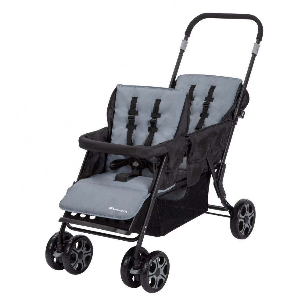 Découvrez la Poussette double teamy – shadow black de chez Bebeconfort. Cette poussette double est tout confort pour les promenades en tandem. Équipée de deux assises confortables pour des enfants d’âge rapproché (Une assise de la naissance jusqu’à 6 mois. Une assise jusqu’à 4 ans soit 22 Kg) Plusieurs positions dont une allongé, permettra de longues promenades avec vos enfants. Légère et et pliable d’une seule main grâce à son système de pliage compact; cette poussette double contient 1 habillage de pluie et 1 panier XL pour le rangement.