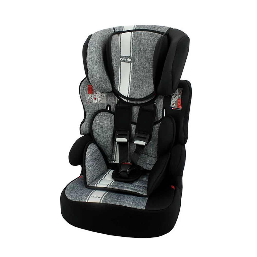 Le siège auto BELINE du groupe 1/2/3 de la marque Nania. Il est utilisable de 9 à 36 kg soit de 2 ans à 10 ans environ. Ce siège auto Nania est fabriqué et testé en France, de plus il est homologué selon la norme ECE R44/04. Il s’installe face à la route (à l’arrière de la voiture) à l’aide de la ceinture de sécurité à 3 points du véhicule.