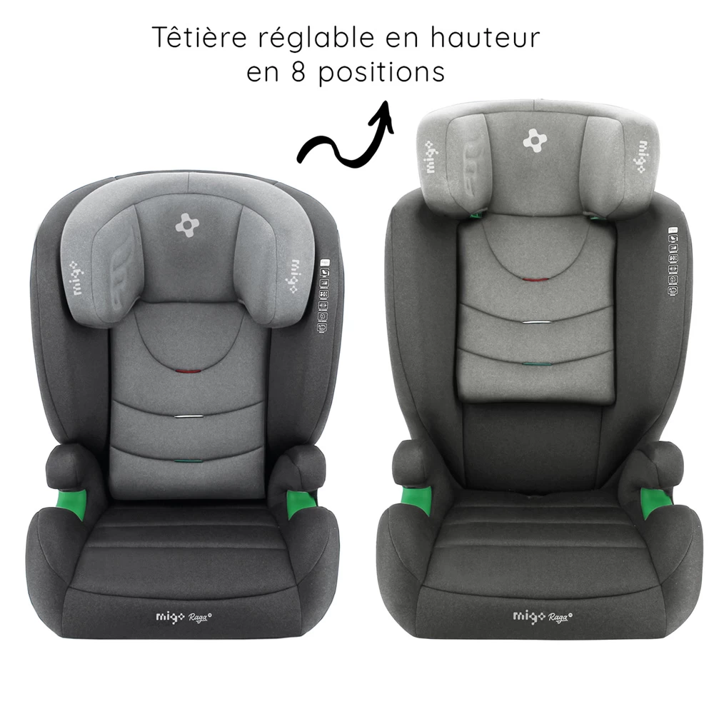 Siège auto RAGA isize type rehausseur pour les enfants de 100 à 150 cm soit de 4 ans à 10 ans. Le rehausseur enfant se fixe sur les ancrages isofix de la voiture, et l’enfant est attaché avec la ceinture de sécurité 3 points.