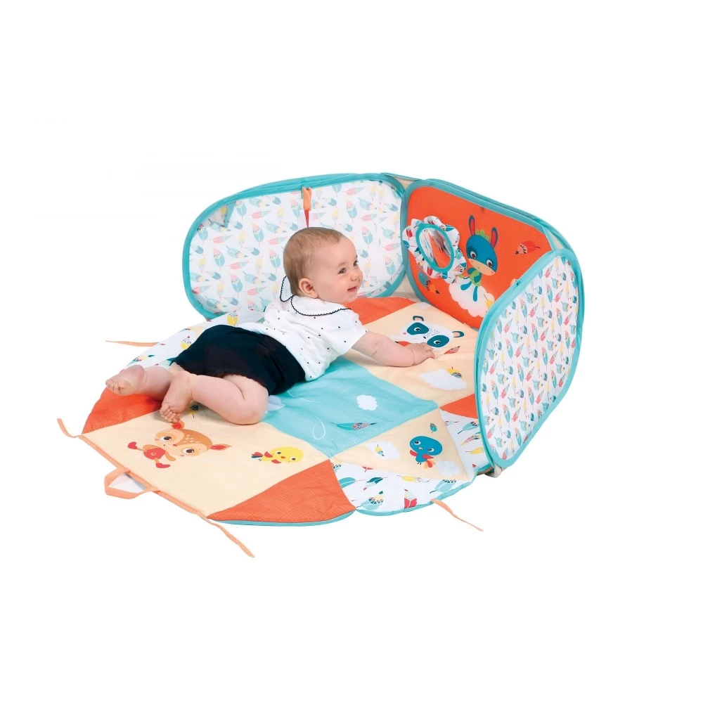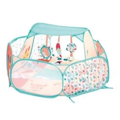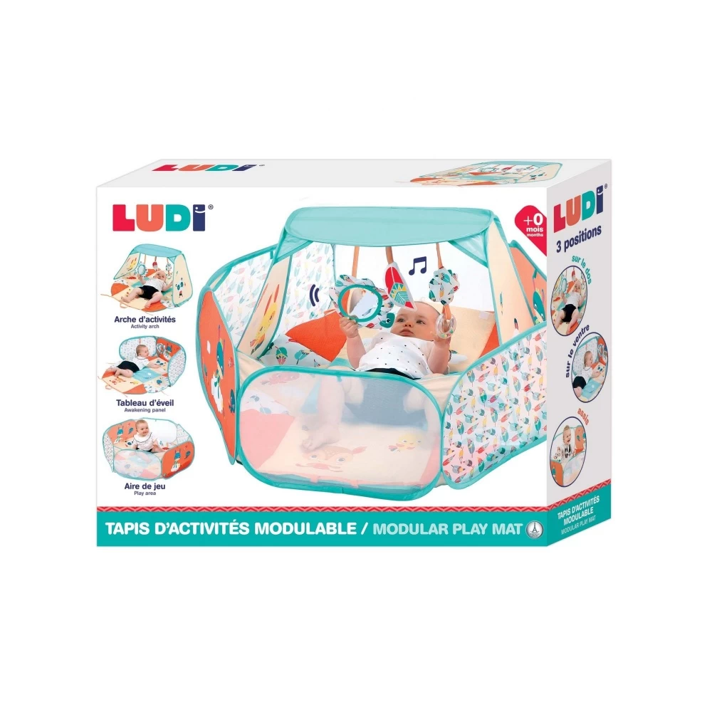 Tapis d’éveil modulable de la marque Ludi Jouets. Ce tapis est modulable 3 en 1 : il peut se transformer en aire de jeu, en tapis d’éveil et en parc. Ce produit est facilement pliable et transportable pour vous permettre de l’emmener partout. Ce tapis d’éveil est évolutif et est vendu avec 4 activités différentes.
