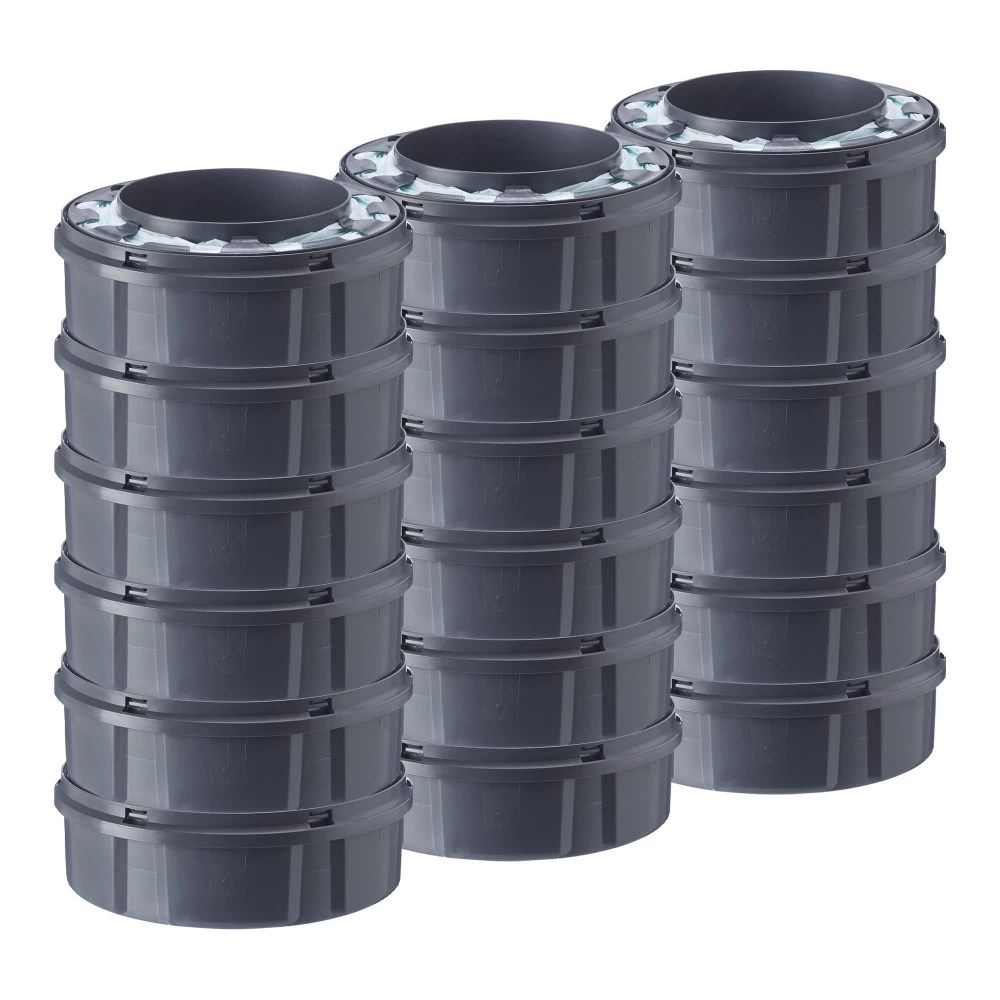 Le film antibactérien Greenfilm est 100 fois plus efficace que les autres sacs à couches classique grâce à la technologie Biomaster qui élimine 99 % des germes nocifs. Chaque recharge contient assez de film pour emballer vos couches pendant environ 1 mois (varis en fonction de leur taille et la fréquence d’utilisation de la poubelle).